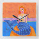 My funky abstract mermaid painting makes this lovely wall clock a colorful work of decorative art!