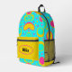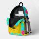 This stylish backpack showcases a lively abstract pattern of turquoise, yellow, pink, and green, creating a dynamic and eye-catching design that stands out from the crowd. Whether you're heading to class, the office, or a spontaneous day trip, the vibrant Abstract Backpack is your perfect companion, adding a splash of color and a touch of artistic flair to your journey. To make this backpack even more special, the name on the front pocket is customizable, adding a personal touch to a funky backpack.