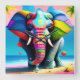 Funky and Playful Rainbow Elephant Print Square Wall Clock