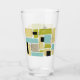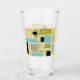 This fabulous mid century modern glass tumbler features aqua blue, avocado green, yellow, and tan abstract rectangles, along with highlights of black and white starbursts. It's perfect to either display in a kitchen cabinet or on a retro bar cart.