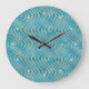 Funky Aqua Turquoise Blue Curved Lines Art Pattern Large Clock