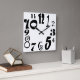 A clock with funky fun numbers, in black and all different sizes and fonts on a white background. If you wish, you can change the background to a different colour by selecting the "Printed Background Colour" option.