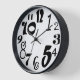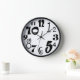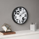 A clock with funky fun numbers, in black and all different sizes and fonts on a white background. If you wish, you can change the background to a different colour by selecting the "Printed Background Colour" option.