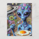 Funky Blue Alien Eating Fried Eggs Postcard