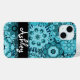 Funky Blue Retro Floral Pattern with Name Case-Mate iPhone Case