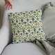 This funky retro style patterned throw pillow features circles of tan, white, two shades of blue, and yellow. This is sure to be an eye catcher on your bed or sofa!