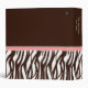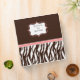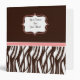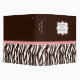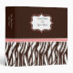 Cute chocolate, pink and white zebra print binder features fun stripe pattern on front and back with scroll frame on front. Add your custom text to the front and spine. .