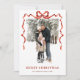 Funky Christmas Boho Red Bow Ribbon 3 Photo Holiday Card