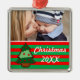 Funky Christmas Tree and Stripes Custom Photo Metal Ornament
