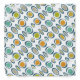 This fun mid century modern bandana features abstract circles hanging on a stalk in the colors of turquoise blue, orange, gold, tan, blue and avocado green