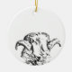Lightweight, smooth, pure white ornament with nice sheen. Perfect size to be seen from across the room ... and to attract closer inspection! Price was great for ordering enough for the whole family! Clear, bold black design just as requested. Matches the order exactly. Just so nice!