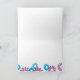A thank you card for any occasion! Cyan and lilac stylized flowers overlay each other to give a casual, playful feel to this card. Leave the message on the front as is or change it to your own name or any other message you like. Leave the inside blank or add your own special message. Available in alternate colors and in matching postage and favors.