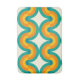 This design features a beautiful contemporary wave pattern made up of dark yellow, orange, teal blue, ocean green, and ecru ivory cream-colored geometric half circles. Set against an ivory cream-off-white background, this ornate and elegant style is perfect for the artistic fashionista, trendy hipster, and lovers of vintage retro art. It's an eclectic design that appeals to fans of abstract digital geometric motifs.