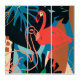 Funky Flamingo II by June Erica Vess. Pink flamingoes are surrounded by abstract-looking tropical greenery in unique shapes and colors. | 133081GG