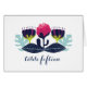 Modern and elegant Funky Floral Wedding Table Number Card with a colorful array of lush dark blue and periwinkle foliage and stylized magenta pink and purple flowers. This unique and trendy table card can be easily customized with your wedding details and table number(s). For more customization options, click on the Customize It button.