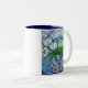 Crisp, white tulips in a country pitcher with lots of cool blues painted in a creative, stylish composition.