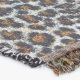 This original sherpa blanket has a fluffy leopard print pattern on it. The design on this cool and unusual door mat is an animal print that really stands out and reflects the fun side of your personality. The black and tan leopard spots look cool against the cream/off white background and should bring a smile to your face.
