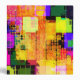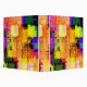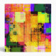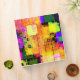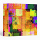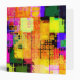 Modern, groovy geometric design using colorful abstract squares and circles. A kaleidoscope of colors makes up this contemporary design.