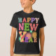 A funky and colorful text design says a happy new year. Perfect for a New Year celebration or New Year's eve party.
