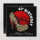 Funky Leopard Stiletto 40th Birthday black red Invitation