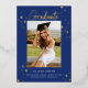This modern graduation announcement features a vertical photo and hand-drawn stars with modern script "Graduate" in raised gold foil over a brilliant *ultramarine blue background. On the back there is another photo and invitation text. You can edit the text to be a personal message or the graduate's plans if you're not having a party. You can also delete the photo and text if desired. *All colors of this design are customizable!
