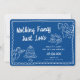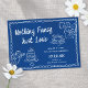 This modern wedding save the date features a hand-drawn frame illustration with cupids, cake, and cocktails in white over the perfect shade of blue. The look is handmade and fun, yet still romantic and elegant! See the collection for more items. *All colors are editable*