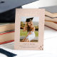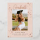 This modern graduation announcement features a vertical photo and hand-drawn stars with modern script "Graduate" in raised rose gold foil over a pretty *blush pink background. On the back there is another photo and invitation text. You can edit the text to be a personal message or the graduate's plans if you're not having a party. You can also just delete the photo and text if desired. *All colors of this design are customizable!