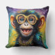 Funky Monkey with Gold Glasses Throw Pillow