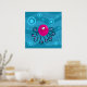Funky cartoon octopus swimming in the ocean waves with retro air bubbles.