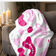 A pink cow print blanket with a personalized name is a versatile and stylish addition to nursery decor. Featuring a classic design, these blankets showcase the iconic pink and white cow print pattern with cute text Love Mooo "Baby Name". The contrasting colors create a striking visual impact, adding sophistication and modernity to your nursery decor. Perfect gift for baby shower.