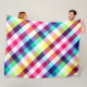 A large sized fleece blanket featuring a colorful plaid pattern design in rainbow colors.