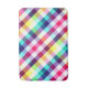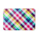 A medium sized bath mat featuring a colorful plaid pattern design in rainbow colors.