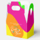 Bold and colorful retro bridal shower with flowers, rainbow, and peace sign
