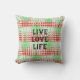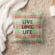 Funky Retro Green, Red, Pattern, Flowers, Throw Pillow
