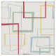 This funky mid-century modern fabric features dark red, light blue, soft green, and yellow abstract squares and rectangles. It's highlighted by thin black abstract squares and rectangles. Add a pop of retro fun to your sewing project!