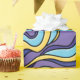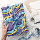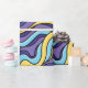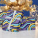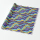 Colorful waves wrapping paper with a pattern featuring seamlessly tiled funky abstract waves in yellow, blue and purple colors. This fun trippy geometric design is drawn in a retro modern style.