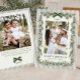 Funky Sage Green Pine Bow Frame Christmas 2 Photo Holiday Card