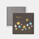 Funky floral thank you magnet featuring a butterfly and an assortment of spring flowers in orange, blue, pink, yellow and white against a dark brown background. Text can be personalized by you. Copyright © Lisa Marie Robinson. All rights reserved. It is illegal to use or duplicate this, or any of our images, without written permission.