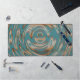 Contemporary teal blue green, rust orange, and dark brown colored round spiral pattern. Beautiful, modern and cool keyboard desk pad for the trend-savvy and art-loving hip trendsetter, vintage retro look style motif lover.