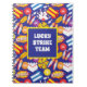 Funky notebook printed with a cool pattern of ten pin bowling ball, pins, strikes, bowling shirts and shoes. There's a customisbale area on the front to add your team name or message