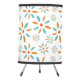 This funky mid century modern table lamp features a pattern of abstract flowers in turquoise blue and two shades of orange. This will add that pop of color to your side table!