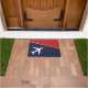 Funky And Stylish White Plane / Airplane / Planes Aviation Pilot Flying Door Mat to add to your collection. Red, white and blue background. A cool present / gift idea for all who love custom design personalized unique items, positive vibes, aviation, flying, sky, planes, airplanes, pilots, air transport theme etc. Baby shower, birthday etc. Boy, girl, fly, aircraft, wings, captain, jet, aeronautics, aerospace, meteorology, airborne, airline, airlines, airways, airport, circle.