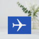 Funky And Stylish White Plane / Airplane Blue Background Pilot / Flying / Aviation Your Text / Blank Postcard. A cool present / gift idea for all who love custom design personalized unique items, positive vibes, aviation, flying, sky, planes, airplanes, pilots, air transport theme, minimalism etc. Baby shower, birthday etc. Boy, fly, aircraft, wings, captain, jet, aeronautics, aerospace, meteorology, airborne, airline, airlines, airways, airport.