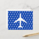 Funky And Stylish White Plane / Airplane / Planes Pattern Blue Background Pilot / Flying / Aviation Your Text / Blank Postcard. A cool present / gift idea for all who love custom design personalized unique items, positive vibes, aviation, flying, sky, planes, airplanes, pilots, air transport theme etc. Baby shower, birthday etc. Boy, fly, aircraft, wings, captain, jet, aeronautics, aerospace, meteorology, airborne, airline, airlines, airways, airport.
