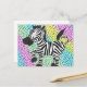Cute Zebra prancing past a colorful, fun and squiggly funky background! This Zebra is having fun for sure and will certainly make you smile!