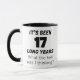 This humorous coffee mug makes a perfect gift for the 17-year milestone, whether a work or wedding anniversary. It features the witty phrase, "IT'S BEEN 17 LONG years; what the hell was I thinking?" ideal for married couples, employees at work anniversaries, or parents of teens. A great gag gift, it adds a funny touch to long-term commitments and friendships, ensuring laughs while celebrating those enduring relationships over the years.