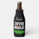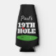Funny 19th hole golf beer bottle beverage holder. Personalized beverage holder with name and funny quote. Add your own text to the template. Sporty putting green design for Birthday party, BBQ, dinner, retirement etc. Double sided print. Humorous golfer gifts for dad, husband, sports coach, grandpa, father, boss, co worker, buddy, instructor, coworker, mom, wife etc. Custom can and bottle cooler gift ideas.