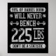 Funny 225 Pound Bench Press Gym - Dont Be A Statis Poster