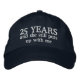 25th wedding anniversary gift for him says 25 years and she still puts up with me on an embroidered ball cap hat for the man married 25 years to the same wife.