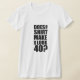 My overall review is that the T-shirt is nice, it fits true to size however the font is significantly smaller than advertised and you can't read it. The printing is unreadable and there is a strain to read it. It does not look like the advertised product. Maybe the shirt color is darker or a larger more visible font should have been used. Photos with and without flash and font is barely legible.